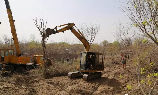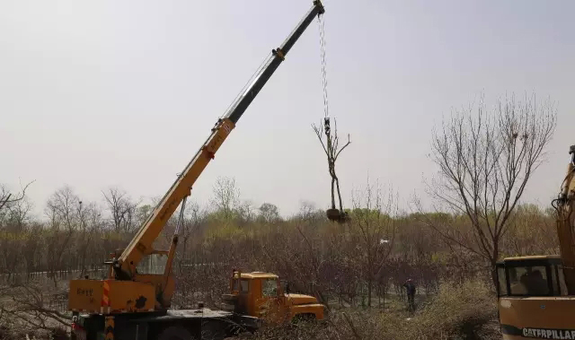 在高升苗木基地廠區(qū),首先映入眼簾的是一棵棵系著“紅頭繩”橫臥的元寶槭樹,一輛輛吊車正在慢慢吊起樹,緩緩地移出林區(qū),吊裝入卡車,準(zhǔn)備二次移植。所有被選中待移栽的樹苗都系上了“紅頭繩”,大家三個一組、五一個隊的圍在一起挖土起樹。起初,大家揮鍬挖土勁頭兒十足,坑越挖越大可是動作越來越慢,最后竟是小心翼翼的慢動作——清理樹根,原來這份“迅速”與“小心”是為了減少對樹苗的損傷,為提高移栽種苗的成活率做保障。技術(shù)人員說,每種樹木都有自己適應(yīng)的環(huán)境,同是一個地方也有陰面陽面,背風(fēng)沖風(fēng)的區(qū)別,同一個樹種苗齡不一樣,對環(huán)境的適應(yīng)能力也大有區(qū)別,所以選樹種要認(rèn)真,起樹更要認(rèn)真仔細(xì)。