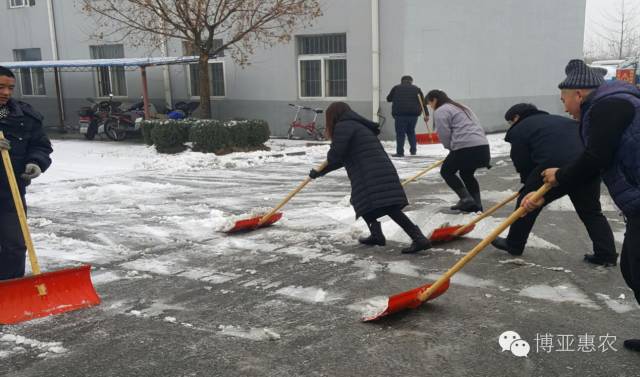 大家不畏嚴(yán)寒,積極參加,紛紛拿起鐵鍬和掃帚,一點(diǎn)一點(diǎn)地把積雪集中堆放,然后再用車把積雪運(yùn)出去。整個(gè)掃雪過程中,大家配合默契,干的熱火朝天,不亦樂乎。每個(gè)人都把公司當(dāng)成自己的家,每個(gè)人的臉上都洋溢著最簡單的微笑,勞動(dòng)的熱情和團(tuán)結(jié)的力量讓這個(gè)冬日變得格外溫暖,忙碌的身影形成了一道美麗的風(fēng)景。經(jīng)過一個(gè)多小時(shí)的奮戰(zhàn),積雪全部鏟除,我們開辟出一條洋溢著溫情的通暢之路。